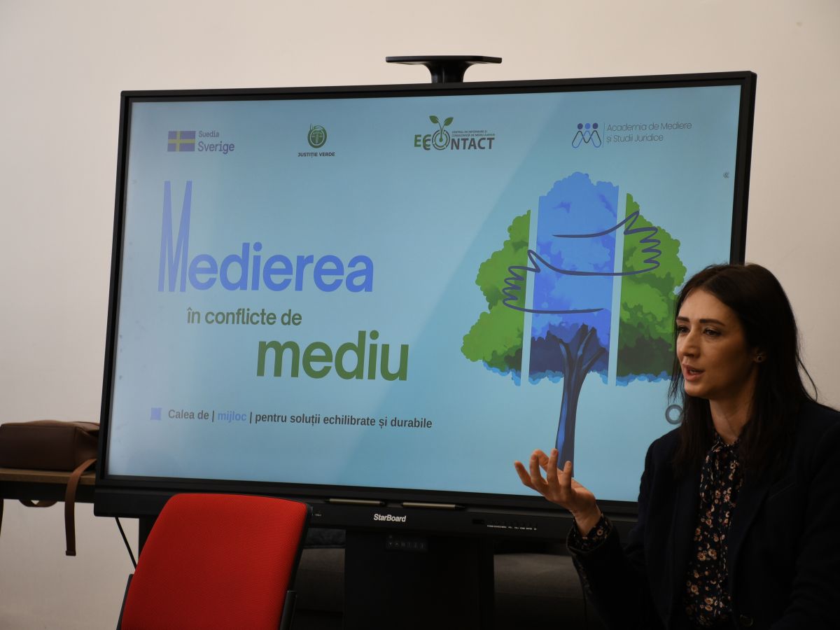 Un accent aparte a fost pus pe experiența practică a EcoContact, prin prezentarea unor cazuri concrete gestionate și soluționate, utilizate pentru a evidenția tipologia conflictelor de mediu care pot fi supuse medierii. În acest context, participanților le-au fost explicate exemple de conflicte generate de activitatea fermelor de animale, inclusiv cele legate de miros, gestionarea dejecțiilor, poluarea apelor și disconfortul creat comunităților locale, precum și situații ce pot apărea în legătură cu construirea unui abator în imediata apropiere a localităților sau în vecinătatea unei arii naturale protejate. Sesiunea a urmărit să contureze rolul medierii ca mecanism complementar de soluționare amiabilă a unor astfel de dispute, în special în raporturile dintre comunități, autorități publice și agenți economici.